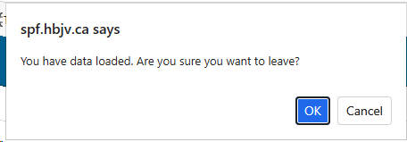 To avoid any accidental losses, if user attempts to navigate away from the page prior to 'Saving to SPF', a warning prompt will appear and will require action before proceeding.