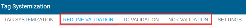 Redline, TQ, and NCR Validations Tabs