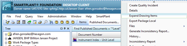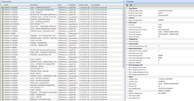 5. Select any item to view the properties published by SPI in the Properties pane on the right side of the screen.