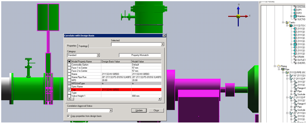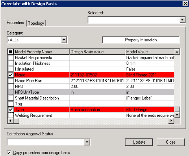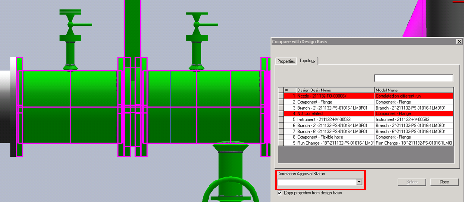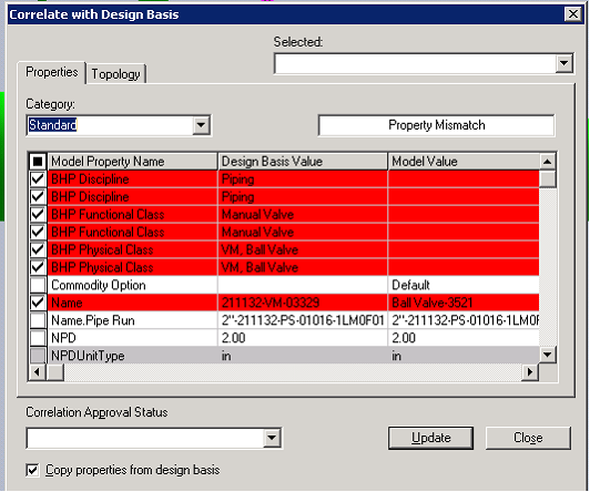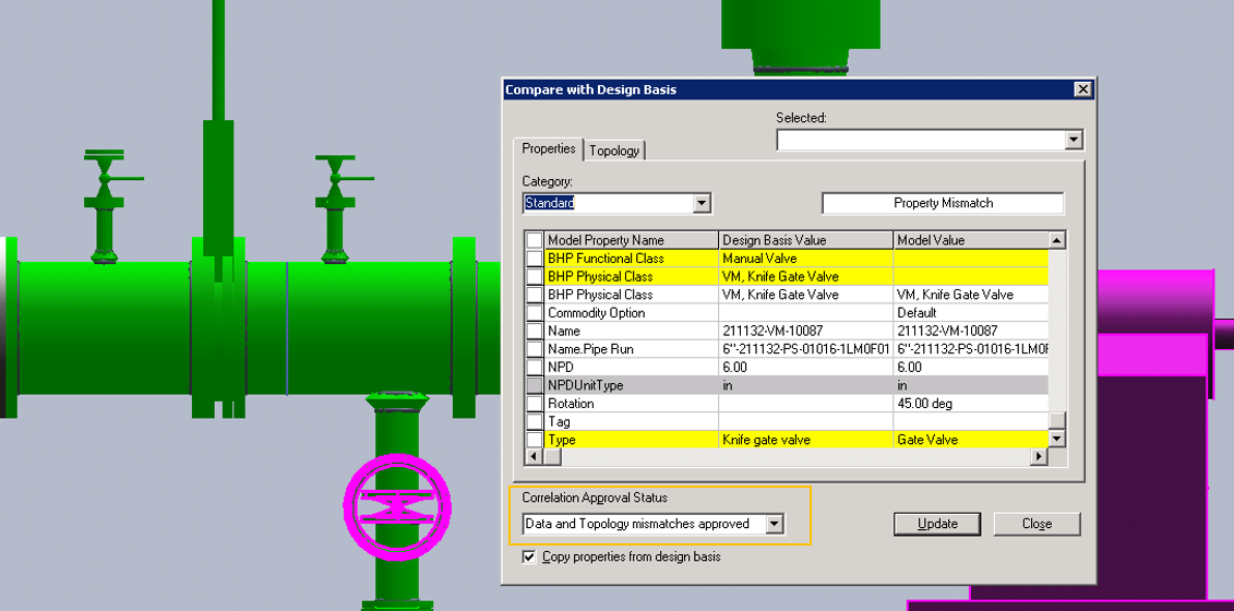 As mentioned above since we do not knife gate valve short code in S3D specification therefore we will not update the Type property and approve this discrepancy by using the Correlation Approval Status.