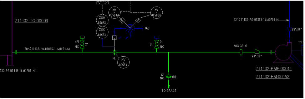 9. Correlate the valve on the 6-inch drain pipe run as shown in the following image.