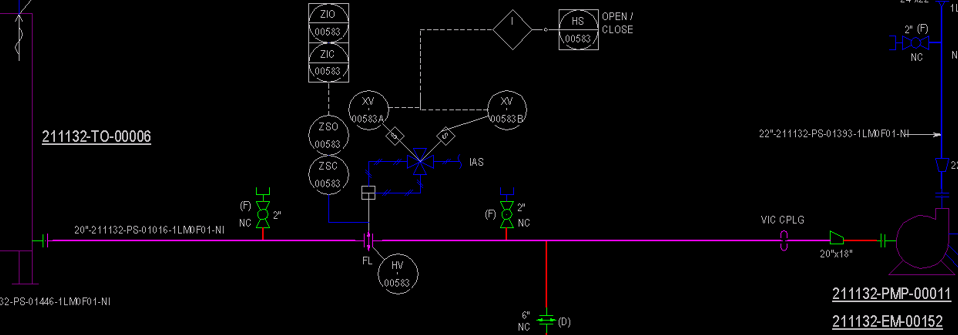 10. Now all pipe runs are correlated with main 20-inch pipe run, displayed in purple, which means there is topology mismatch.