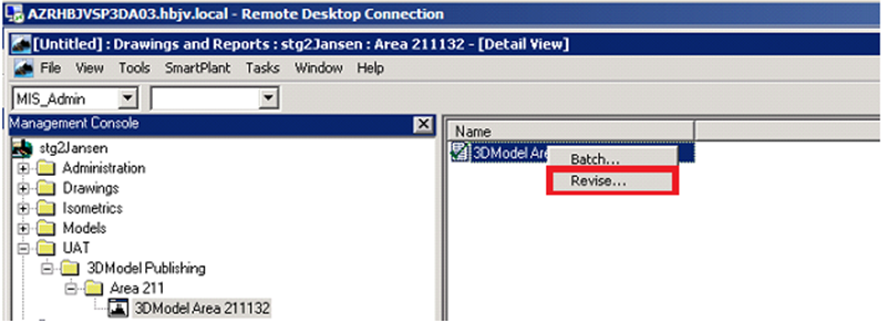 2. Document must be revised before it can be published. Right-click on the drawing and click Revise … . This will bring up the Revision dialog after prompting for SPF credentials.