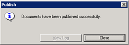 Result: The SPF publishing progress window appears, and, upon completion, a confirmation message is displayed.