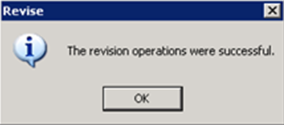 Result: A pop-up confirmation of a successful revisions operation appears. The document is now ready to be published.