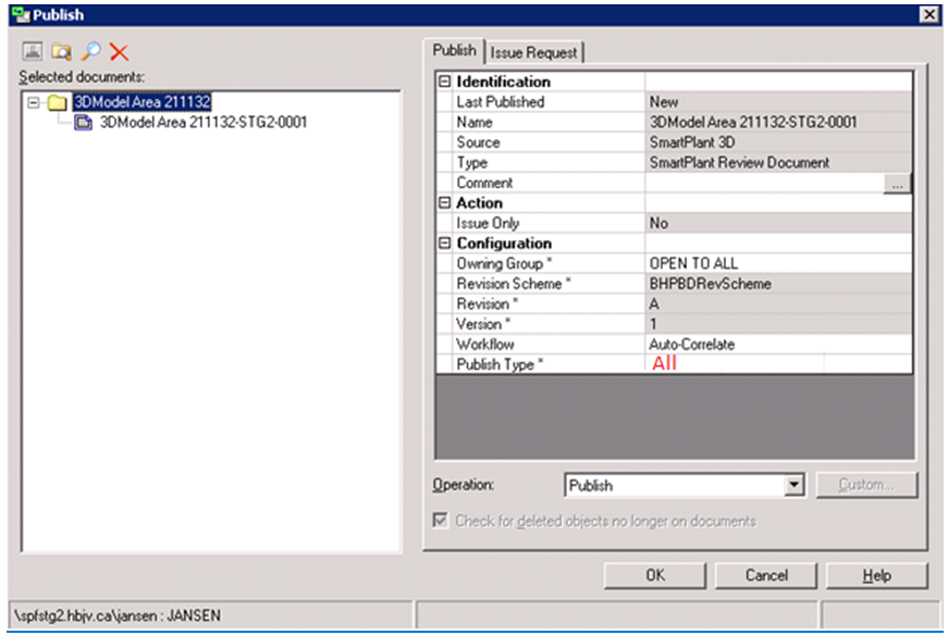 Note: If you use the Update and Publish option, then it will take a while before the publish dialog shows up since S3D will be running the update drawing process first.