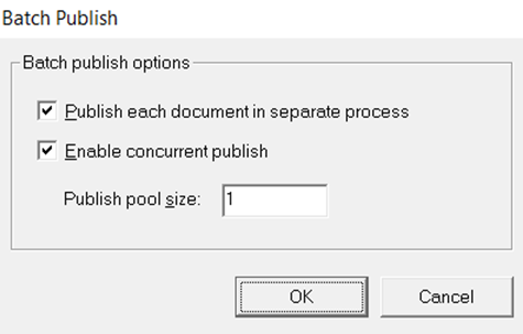 When using background publish option following dialogs will pop up. Accept the default values and click OK to start the publishing process in the background. You can continue working in S3D while the document publishes in the background.