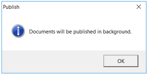 Note: With the Background Publish operation, you will not get a notification for the completion of process, so you must check the document publish status in SPF web or desktop client.
