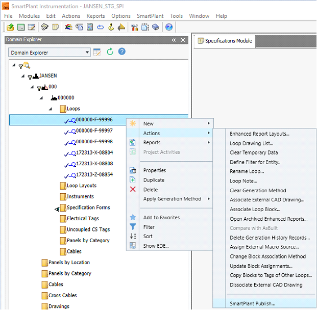 2. Expand the area and unit to publish the loop drawings and click on the Loops folder.