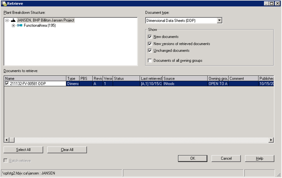 Result: The Retrieve dialogue window is displayed (the window may take a few minutes to load).