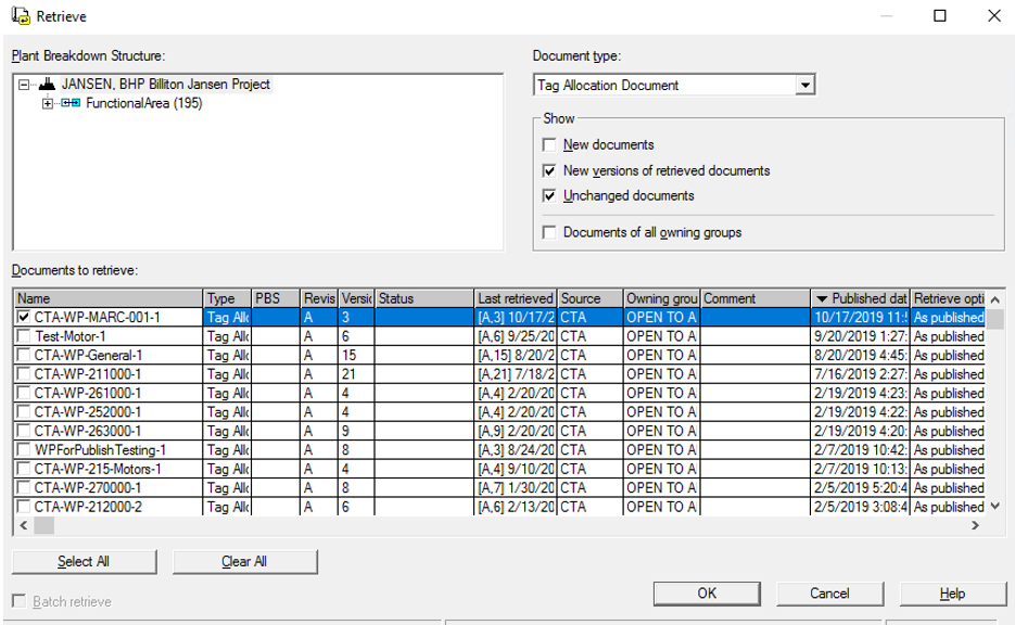 2. Expand the Document type: dropdown menu and select Tag Allocation Document.