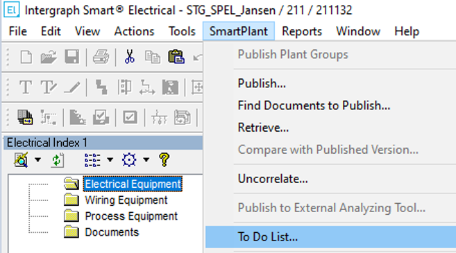 4. Expand the SmartPlant menu on the top ribbon and select To Do List...