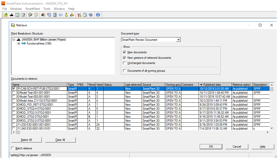 Note: Before the retrieval step, SPI publishes the cable schedule which is retrievedin S3D. Refer to Publish a Cable Schedule - Integration Tips (S3D). Cables are then routed, and a .vue file with cable length and routing path is published back from S3D to be retrieved in SPI, which closes the cycle.