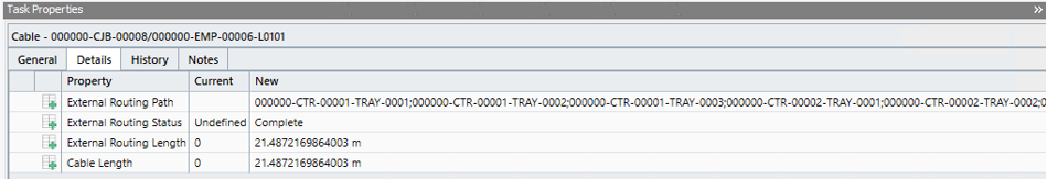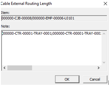 We are retrieving the following values: External Routing Path, External Routing Length and Cable Length.