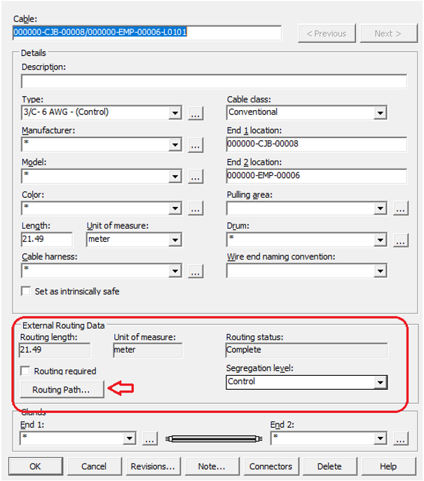 Follow the retrieve procedure explained in Retrieve a P&ID from SP&ID to retrieve the .vue files with cable length and routing path from Smart 3D.