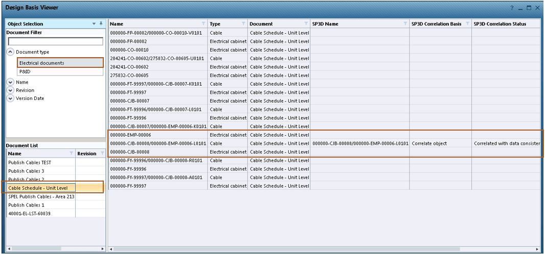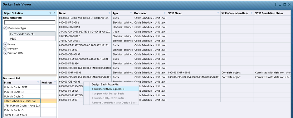 3. Right-click the From device (000000-CJB-00008) and select Correlate with Design Basis