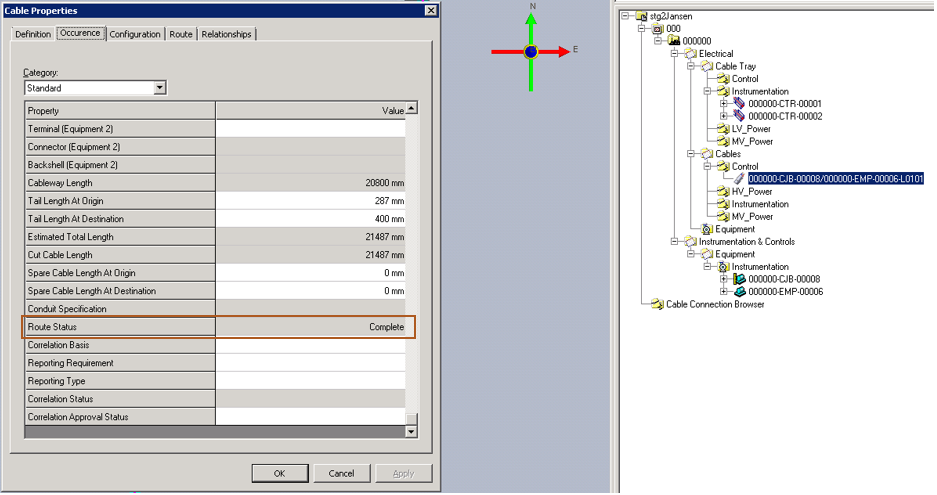 7. Check the cable properties to ensure that its Route Status is set to Complete.