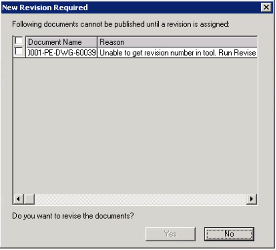 The SmartPlant P&ID Drawing Manager verifies if a drawing has already been published in SPF. New drawings must obtain a revision in SPF. This is a one-time process for drawings being published for the first time.