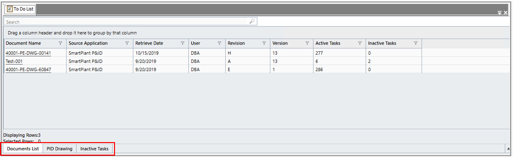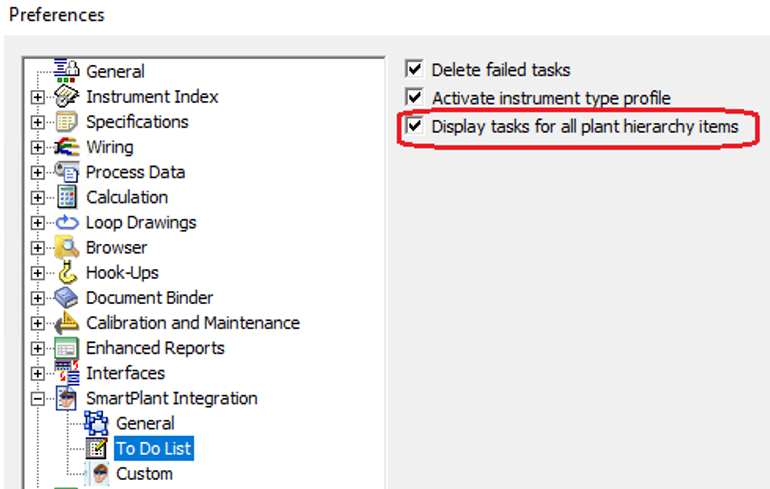 The To Do List displays the tasks to be performed in the authoring tool (SmartPlant Instrumentation, SmartPlant Electrical, or SmartPlant P&ID).