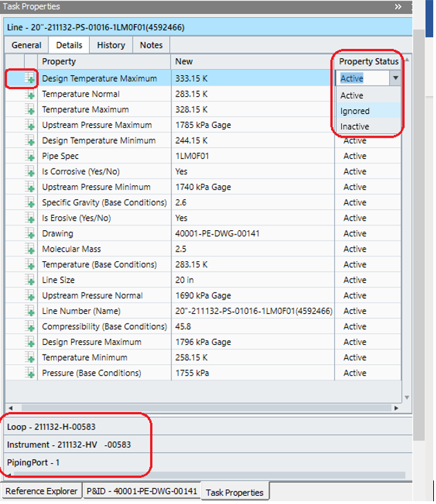 You can change the task property status by selecting it from the dropdown menu in the Property Status column.