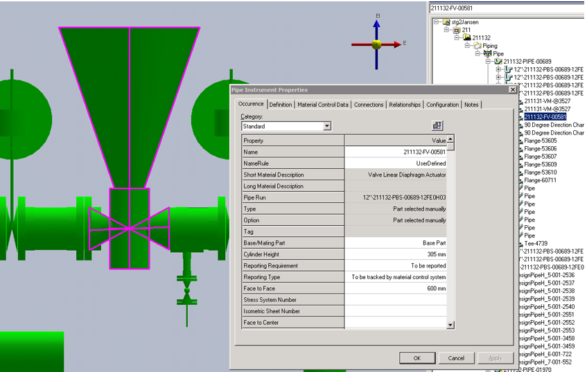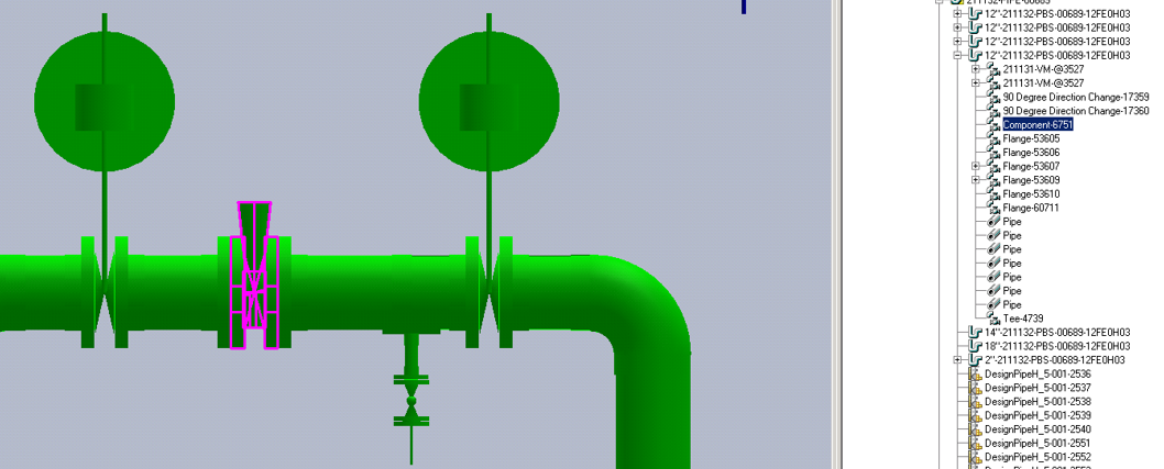 5. Upon the prompt to select the S3D object to be correlated, select the valve along the leg feature.