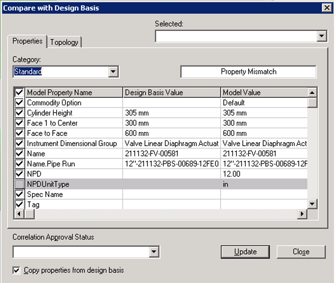 Result: This opens the CorrelatewithDesign Basis dialogue window.